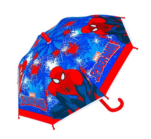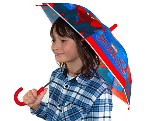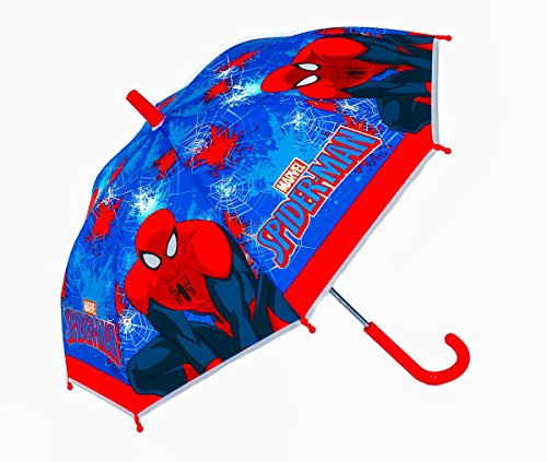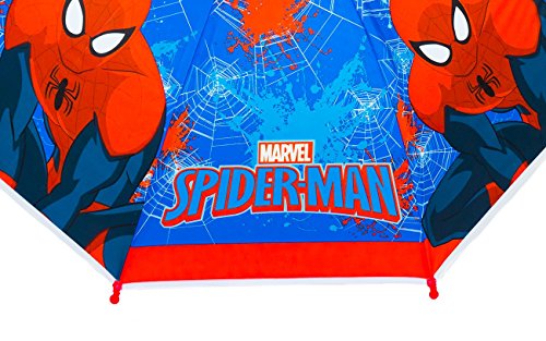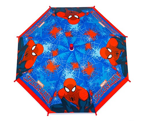 -. Feature : This Spiderman Umbrella is blue and red, with 8 picture panels featuring Spiderman and his famous logo. / The umbrella is made from plastic / measures: Diameter when opened 60cm, length including handle: 60cm