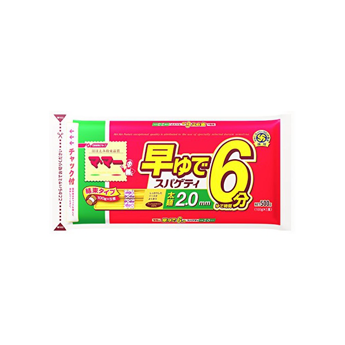 원본상품명: ママ? 早ゆで6分スパゲティ 太?2.0mm チャック付 結束タイプ 500g