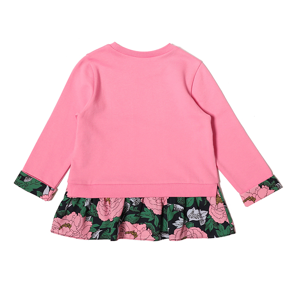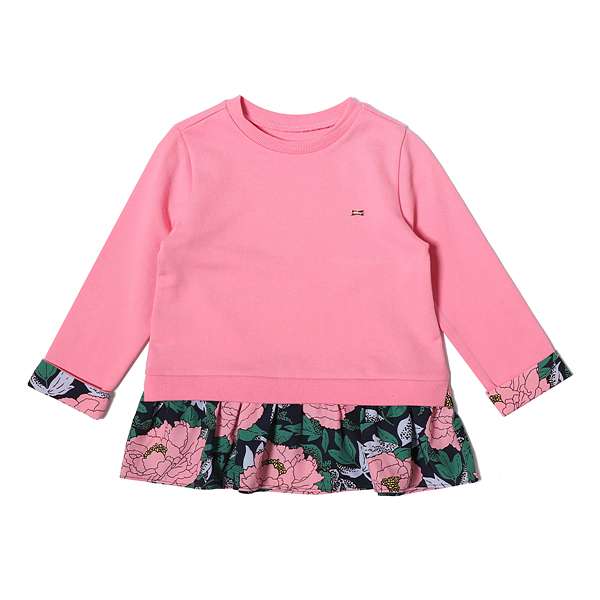 소재-겉감 : 면 100 배색1 : 면 95 폴리우레탄 5 배색2 : 폴리에스터 100 색상-핑크 사이즈-110,120,130,145,155,165상세설명-여아 티셔츠. 간절기에 입기 좋은 티셔츠. 나염배색 핑크 롱티셔츠