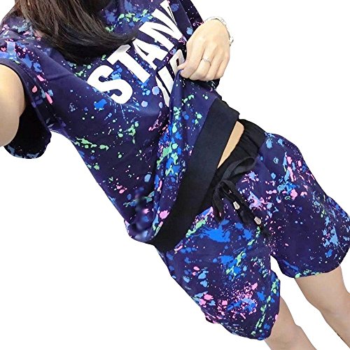 -. Title : (ノーブランド品) セットアップ セット 上下セット 半袖セットアップ レディース 部屋着 ルームウェア スポーティー カジュアル ショートパンツ ペイント