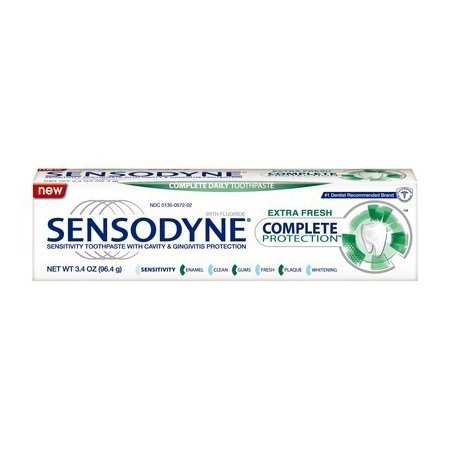 -. Feature : *PACKAGING MAY VARY* / Sensodyne Extra Fresh Complete Protection Toothpaste helps prevent gingivitis and builds a protective layer over sensitive areas to shield you from pain. / This formulation has been specifically developed to deliver all the toothpaste benefits your sensitive teeth need. / Brushing twice a day with Sensodyne toothpaste builds a "shield of protection" against painful sensitivity. / With 7 specially designed benefits, helps to provide healthy gums, fresh breath, whitening, strong enamel and plaque prevention.