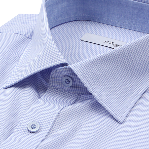 넥밴드안과 시다플라켓, 커프스 살짝 보이는 솔리드 배색이 특징인 비지니스 셔츠입니다.