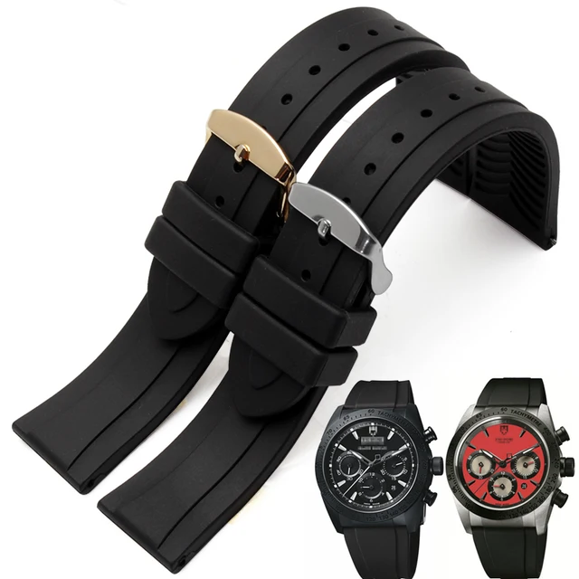 | [해외]19 미리메터 블랙 골드 버클 실리콘 고무 시계 밴드 시계 스트랩 방수 시계 무료 배송 |