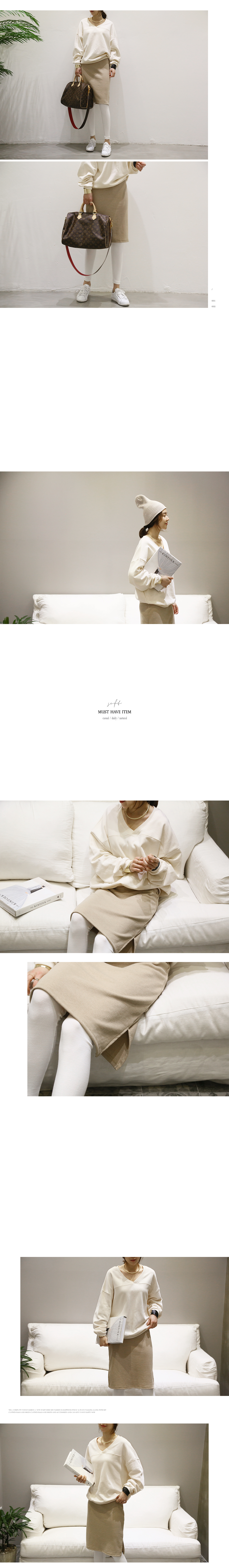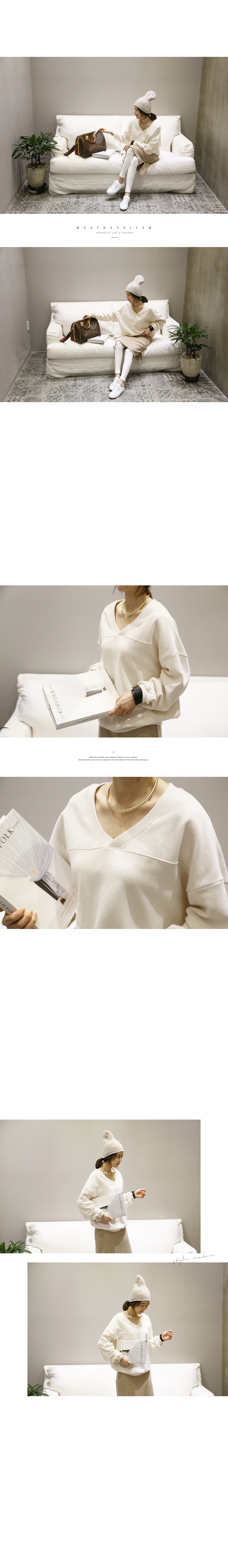맨투맨이지만 라운드넥이 아닌 V넥으로 여리여리한 넥라인을 느낄수 있어요.