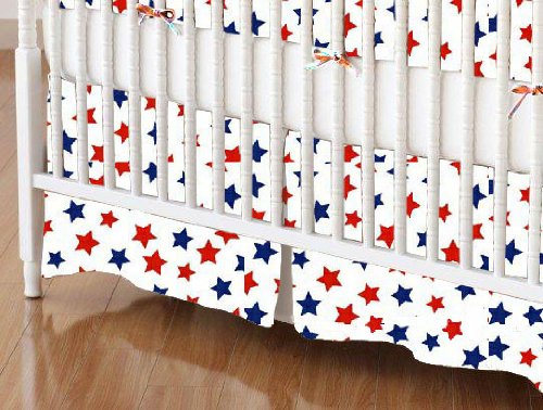 -. Title : SheetWorld - MINI Crib Skirt (24 x 39) - P.R.Imary Patriotic Stars On White Woven - Made In USA