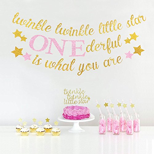 All gold and pink letters are made from heavy gold glitter cardstock,very shiny. perfect for your baby's first birthday party as a banner and photo props.This banner will definitely make your special occasion pop! Note: The item need to finished by string the cardstocks by yourself. 0