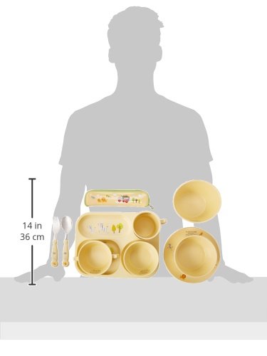 -. Feature : Made out of corn (polylactic acid PLA) / No bio toxin and no BPA / 9 individual pieces: Bowl, dinner bowl, mug, double handle bowl, snack bowl, plate, divided plate, spoon & fork, spoon & fork case / Safe for kids / Lightweight, easy for kids to use