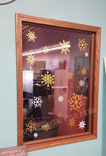 Wall Decor Plus More WDPM3643 Large Snowflake Designs Vinyl Decals Stickers (Set of 13), 8-2.5", Metallic Gold