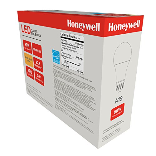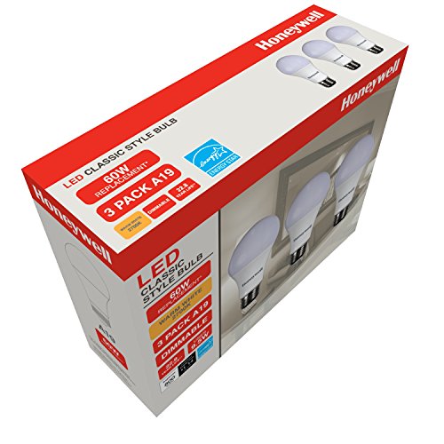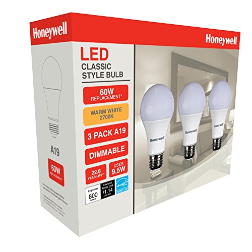 Honeywell A196027HB322 LED A19 Dimmable Light Bulbs - 60 Watt Equivalent -Soft White Light (2700K) - 800 Lumens - Energy Star Rating 9.5 Watt Consumption For Energy Bill Savings - 3-Pack