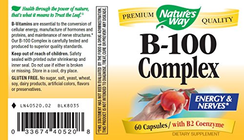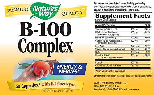 -. Binding : Health and Beauty -. Brand : Nature's Way -. Label : Nature's Way -. Manufacturer : Nature's Way -. ProductGroup : Health and Beauty -. ProductTypeName : HEALTH_PERSONAL_CARE -. Publisher : Nature's Way -. Studio : Nature's Way -. Title : Nature's Way B 100-Complex, 60 Capsule