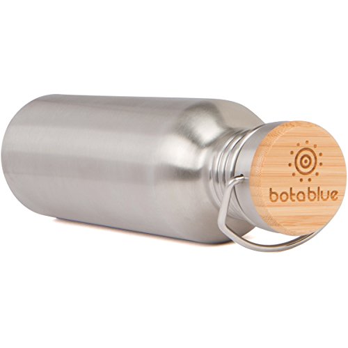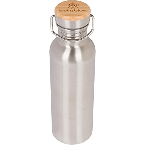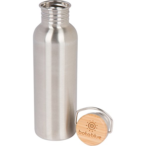 Stainless Steel Water Bottle Classic Single Wall w/ Stainless Unibody Leak Proof Bamboo Loop Cap with Vacuum Seal, Lead Free, 25 ounces Best Simple Water Bottle Out There