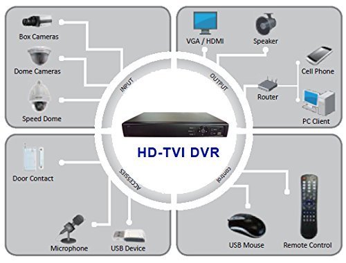 Digital Surveillance Recorder 16CH HD-TVI 1080P H.264 True-HD DVR w/ 1TB HDD HDMI VGA Video Output Mobile Phone Accessible Great for Home Office (Work w/ HD-TVI Standard Analog & IP Cam)