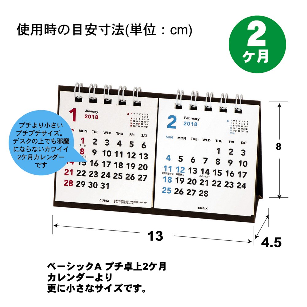 Product Name: Cubix 2018 Basic Calendar Desk Petit Petit 2 Months 203119-01