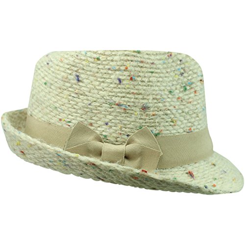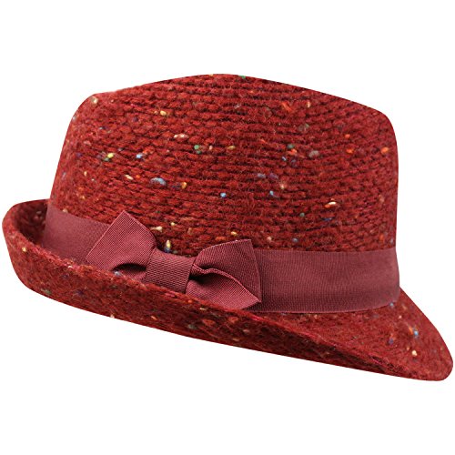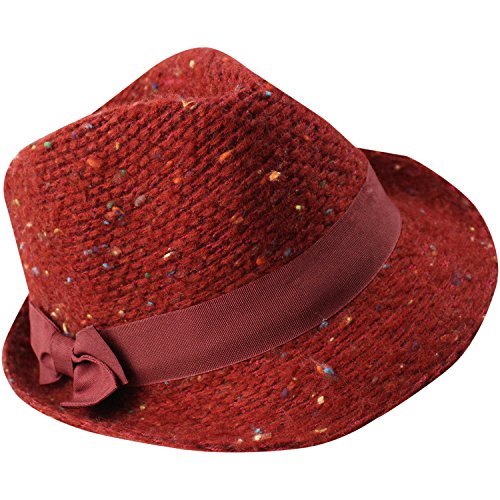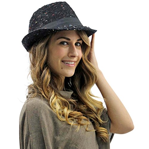 Studio : Luxury Divas Publisher : Luxury Divas Binding : Apparel Product Description Sophisticated and fashionable, this structured knit fedora has flecks of color against a solid base. Perfect to wear outdoors for warmth or indoors for style. Hidden string within interior headband of fedora hat allows minor adjustments for additional com The band and the bow on this fedora are done in a solid color. This trilby hat has an adjustable hat band for sizing. This trilby fedora hat is made from a blend of 70% acrylic and 30% polyester, one size and fits most.