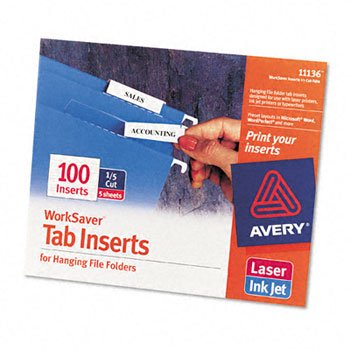 -. Title : Avery® Laser/Inkjet Inserts For Hanging File Folders INSERT,1/5CUT,F/TABS,1C 6R1176 (Pack of50)