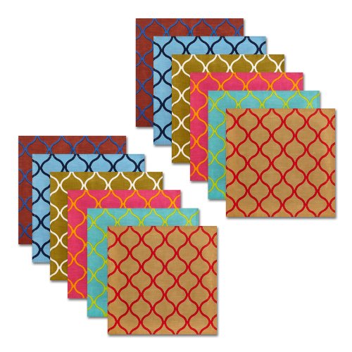 Cotton Craft, Moroccan Tile, Soft Premium Cotton 20x20-Inch. Napkins, Assorted Color (Pack of 12)