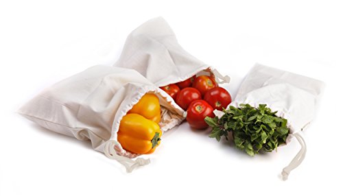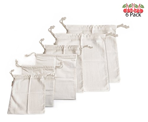 PreserveNext Reusable Organic Produce / Multi-purpose Cotton Bags - For Storing Spices, Vegetables, Fruits | Crafting | Knitting | Party Favors | Pinata Bags | Goodies – 6 Pack (2 each of S, M, L)