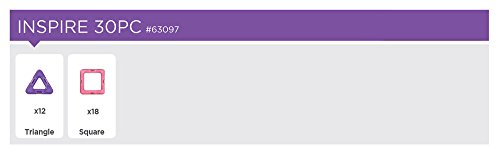 The Inspire 30 Piece Set contains 30 powerful magnets; 18 squares and 12 triangles. It's simple to use and easy to build with from the moment the pieces are out of the box, making it a perfect set for beginners.
