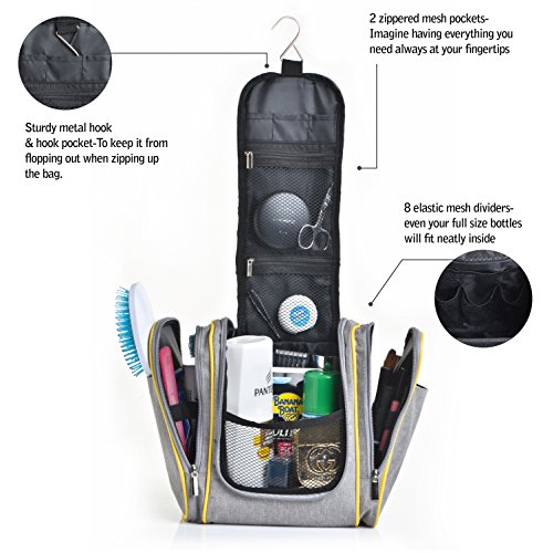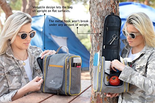 FEEL AT HOME EVERYWHERE YOU GO: Whether camping, at the gym or in a hotel, you’ll see all your toiletries at a glance. The sturdy metal hook won’t break under any amount of weight. Go ahead and pack it as full as you want! Open it up and hang it anywhere. Nowhere to hang your bag? No problem! The versatile design lets the bag sit upright on flat surfaces.