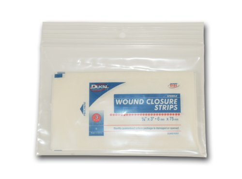 -. Feature : Wound Closure Strips 1/4" x 3" / 3 strips per packet, 4 packets per bag / STERILE, individually wrapped / Great for restocking your first aid bag.