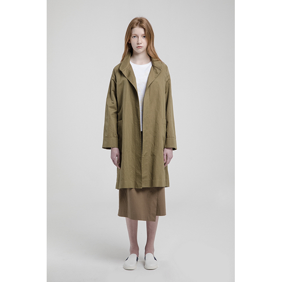 - 미니멀한 디자인을 적용한 여성 트렌치 코트.