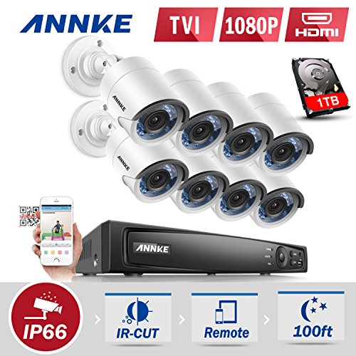 -. Binding : Electronics -. Brand : Annke -. Color : 8CH DVR+8 Bullets+1TB HDD -. EAN : 0744750395923 -. Feature : 8-channal 4-in-1 DVR with 2MP HD bullet cameras to easily meet your security needs both indoor and outdoor. / P2P for easier remote access on smartphone, tablet and PC; line crossing and intrusion detection available. / High-performance IR LEDs provide crystal clear night vision with smart IR-cut, true day and night monitoring 24/7. / Intelligent motion detection works perfectly with email alert to get you informed the minute emergency happens. / Support simple DDNS, H.264+ video compression available for bandwidth efficiency. -. Label : ANNKE -. Manufacturer : ANNKE -. Model : LYSB01IV5L220-ELECTRNCS -. MPN : AU-DT81YA100+AU-CT1AG0403*2 -. PackageQuantity : 1 -. PartNumber : AU-DT81YA100+AU-CT1AG0403*2 -. ProductGroup : Home Improvement -. ProductTypeName : SURVEILANCE_SYSTEMS -. Publisher : ANNKE -. Studio : ANNKE -. Title : ANNKE 8 Channel 1080P HD-TVI Hybrid Megapixel Security DVR System with 1TB Hard Drive Pre-installed and (8) 1920TVL 2.0MP Weatherproof Security Cameras -. UPC : 744750395923