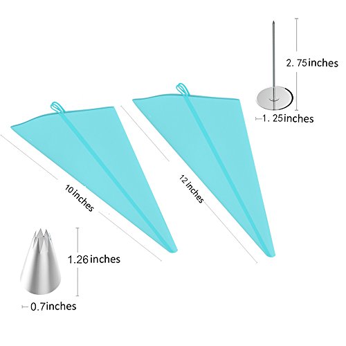 - The decorating patterns include open star tips, closed star tips, french tips, plain tips, round tips, leaf tips, rose petal tips and special tips; one 10 inch and one 12 inch reusable TPU pastry bags for icing and decorations, also included