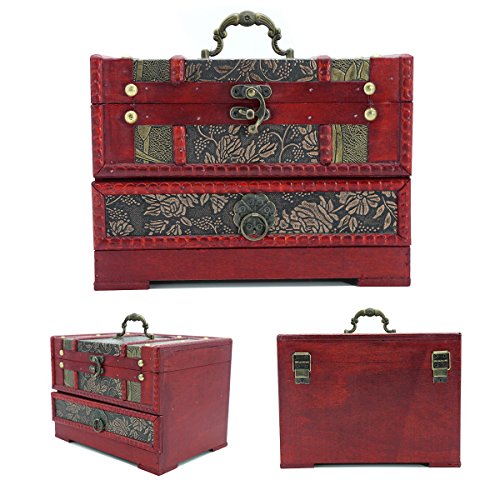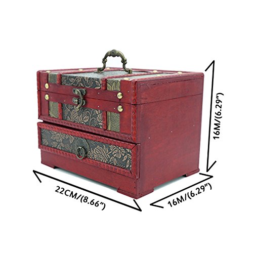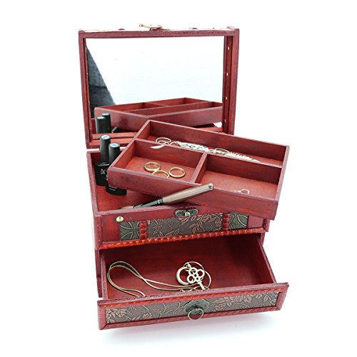 HJR Decorative Treasure Box Antique Vintage Dressing Box Wooden Lock Large Jewelry Box With Mirror Jewelry Storage Wedding Gift Cosmetic Storage