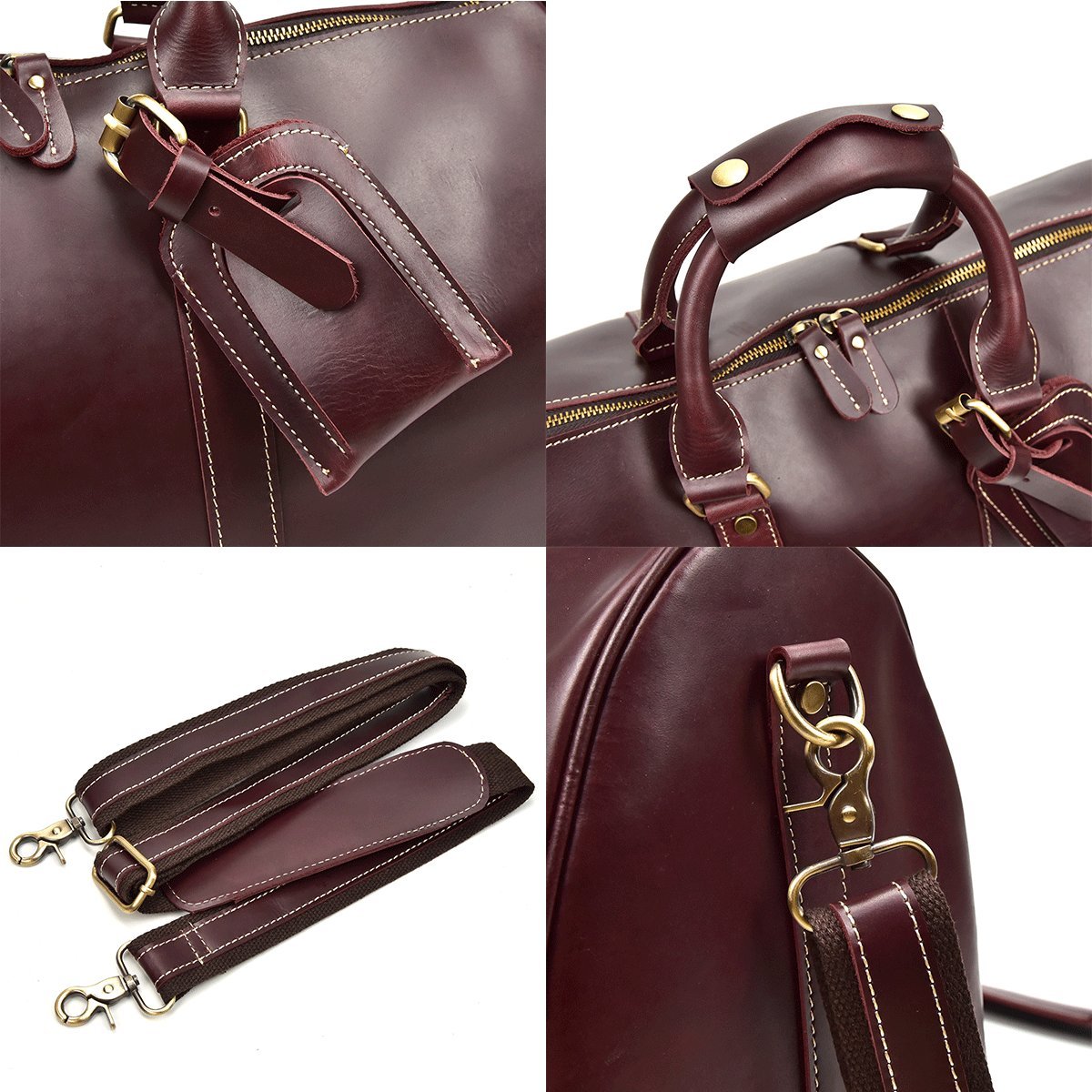 ● Antique style Boston bag, wild leather, super durable (chocolate color oil leather)