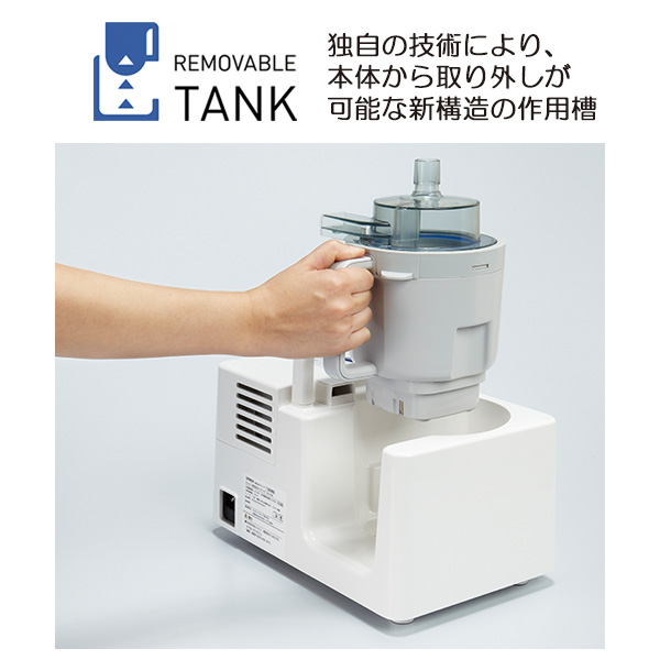 ●付属品:作用槽、薬剤槽カバー、薬剤槽受け、耐熱吸気ホースM(70cm・カフス付)、マウスピース、吸入マスク(大)、薬剤槽×2コ、電源コード