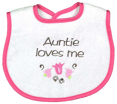 -. Title : Raindrops Auntie Loves Me Embroidered Bib, Strawberry/Hot Pink
