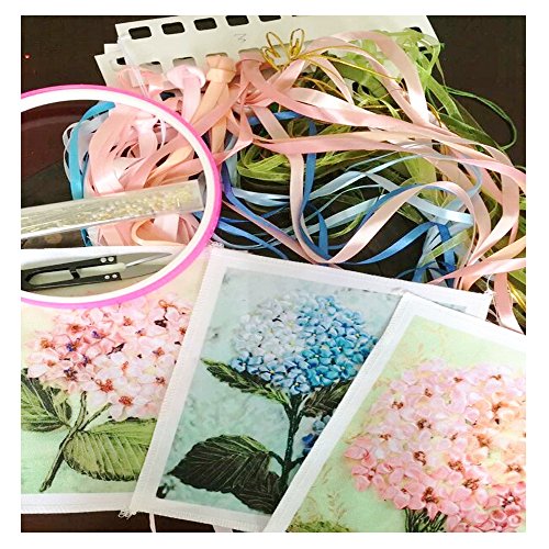 Ribbon Embroidery Kit Little Hydrangea Set for Beginner Painting Wall Decor with hoop Not Include Frame