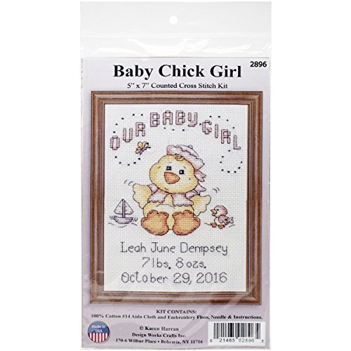 Tobin 14 Count Our Baby Girl Chick Birth Record Mini Counted Cross Stitch K, 5" by 7"