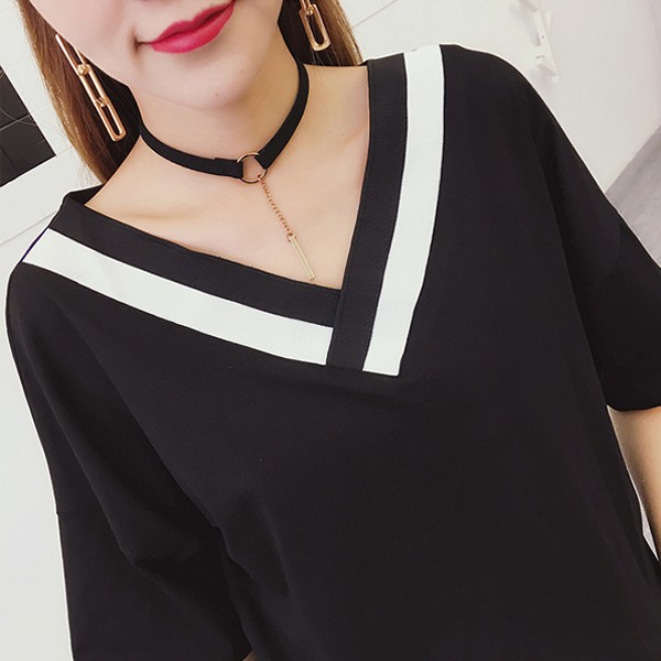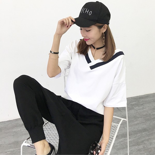| 商品名 | ゆったり バイカラー Vネック Tシャツ カットソー |