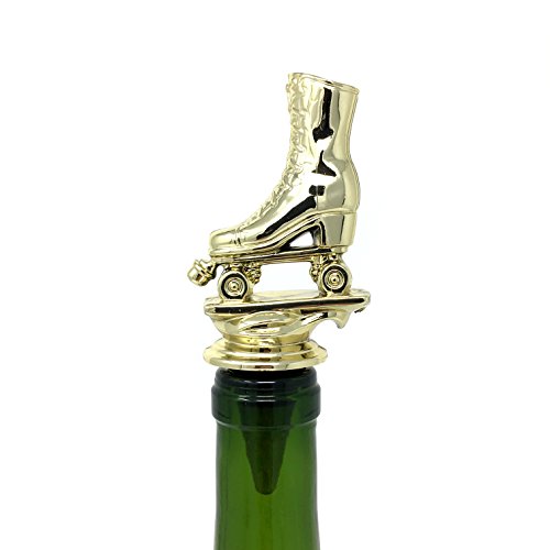 -. Title : Roller Skate Wine Bottle Stopper - Handmade with Stainless Steel Base and Repurposed Trophy Top