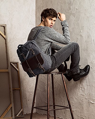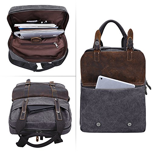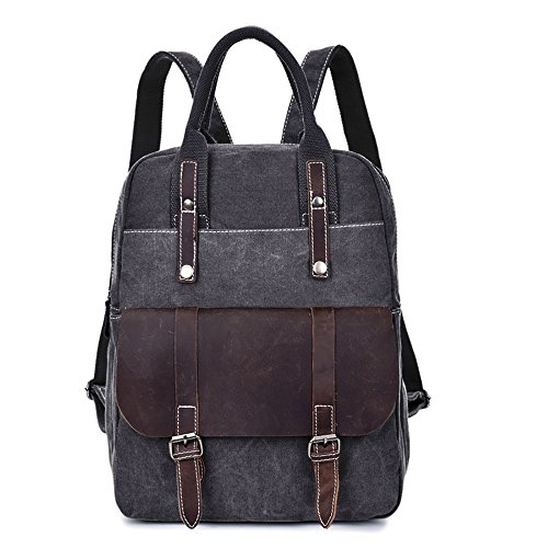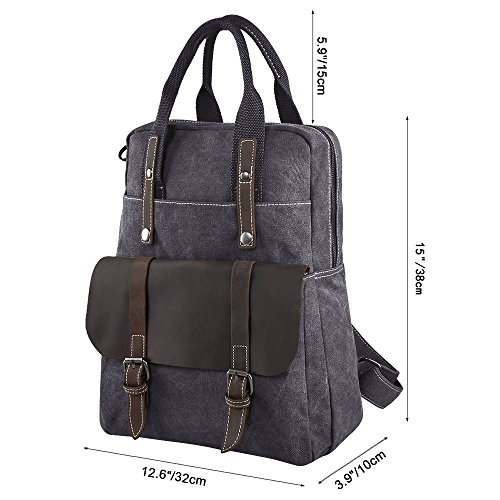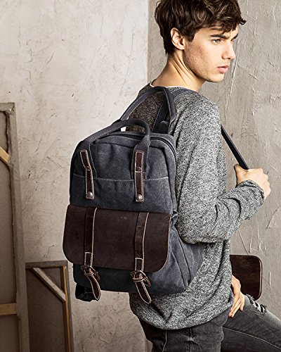 S-ZONE Canvas Genuine Leather Travel School Bags 15.6-inch Laptop Backpack Rucksack Daypack Features - Fashion canvas backpack, perfect for everyday use, with all your daily bits.