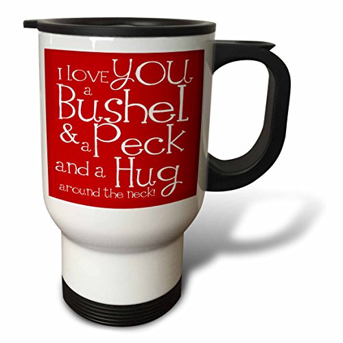 3dRose tm_193475_1 I Love You a Bushel and a Peck Red Travel Mug, 14-Ounce, Stainless Steel