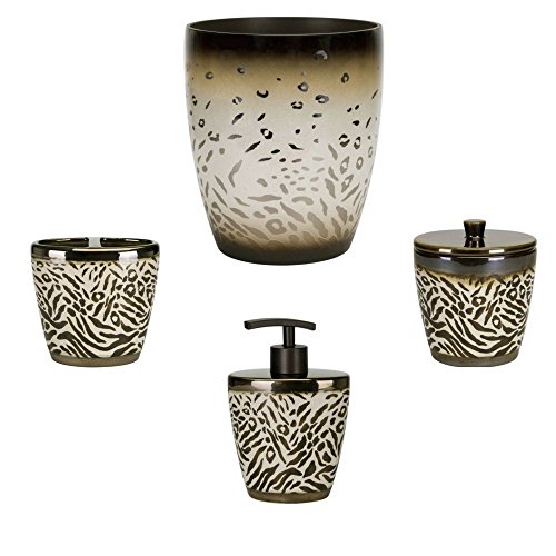 Elegant Bath Accessories, Animal Pattern, Resin Waste Can, Ceramic Jar, Toothbrush & Toothpaste Holder and Lotion/Soap Pump