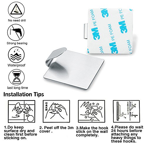 - ❤ HIGH QUALITY: This heavy duty adhesive hooks are made of 304 Brushed Stainless Steel.Ensuring quality and longevity,as well as rust and corrosion resistant for long-term use.