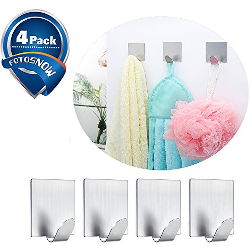 3M Hooks Adhesive Hooks Heavy Duty Hooks Waterproof Stainless Steel Bath Organizer Super Powerful Wall Hanger for Robe Towe Coat Keys Bathroom Kithchen 4-Pack