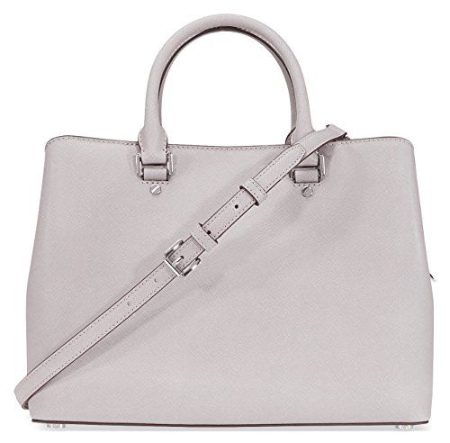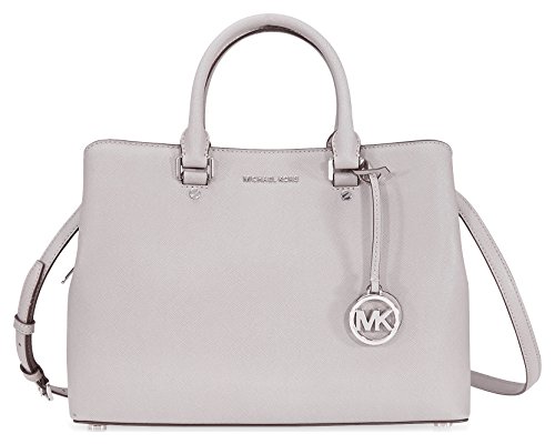 Studio : Michael Kors Publisher : Michael Kors Binding : Shoes Product Description A Michael Kors satchel crafted in saffiano leather with silver-tone hardware and a polyester lined interior. This Michael Kors satchel features two main pockets with a snap closure, a center zip pocket, an interior zip pocket, 4 interior wall pockets and a key chain; two leather handles and a removable/adjustable leather shoulder strap with a 24" drop. Dimensions: 12.5"W X 8.5"H X 5"D. 0