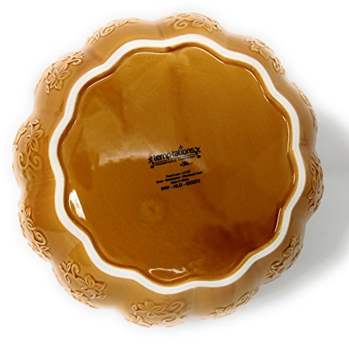 Studio : Temp-tations Publisher : Temp-tations Product Description Serve soup and stew in gracious style. Use this embossed pumpkin tureen as a great centerpiece on your fall table. Dip into this 4-qt pot and dish out elegance every time. Put this pumpkin bowl on your table with a wreath around it for a gorgeous designer look! From Temp-tations(R) Ovenware. 0
