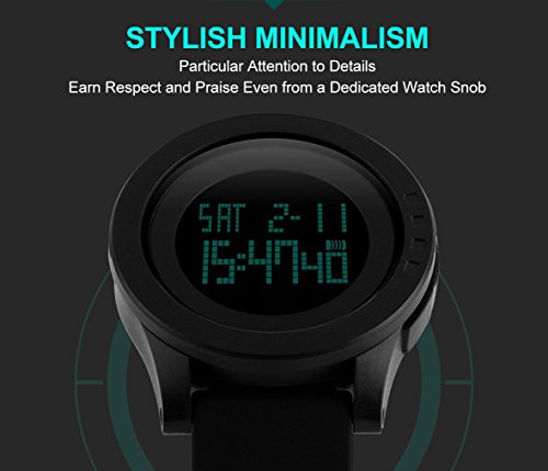 -. Title : Aposon Men's Digital Electronic Sport Watch Multifunction Military 24H Time Quartz Waterproof Casual LED Back Light with Simple Design 164ft 50M 5ATM Water Resistant Calendar Month Date Day - Black