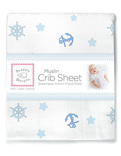 -. Title : SwaddleDesigns Cotton Muslin Crib Sheet, Pastel Blue Ahoy!