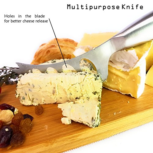 • Cheese Slicer - This knife is excellent for cutting different types of cheeses like the soft ones like Camembert, Danish blue or Brie to semi-hard ones like cheddar, feta.
