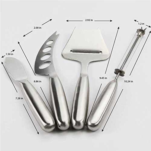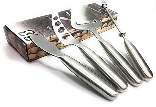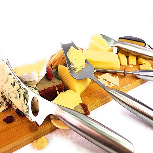 COMPLETE 4-PIECE COLLECTION The cheese knife set consists of 4 unique specialty cheese tools: Spreader Knife, Multipurpose Knife, Wire Cutter , Cheese Cutter. This cheese knives set is carefully selected to meet the needs of anyone who wants to work with soft cheeses like Brie, Curd, Mascarpone and Camembert or with the harder variety such as Gouda, Cheddar, and Parmesan.