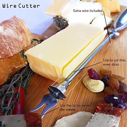 • Cheese Wire Cutter - Cut thin, uniform slices of cheese perfect for serving on top of crackers. Two sturdy wires run along the sides of this slicer so that cheeses can be sliced in two different thicknesses. This design allows you to bear down on hard or chilled cheeses for easier slicing.