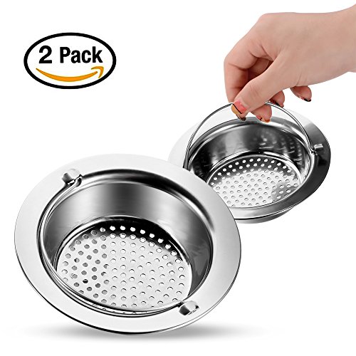 Kitchen Sink Strainer, Fu Store 2 Pieces Stainless Steel Sink Drains Strainers, 4.5" Diameter, Fit for Almost All US Kitchen Sinks