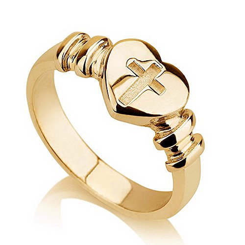 -. Feature : Gold Cross ring with a heart / Please choose Ring size: 5,5.5,6,6.5,7,7.5,8,8.5,9 / Your purchase will arrive inside a lovely gift box ready for gift giving.