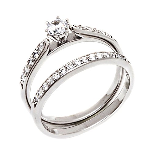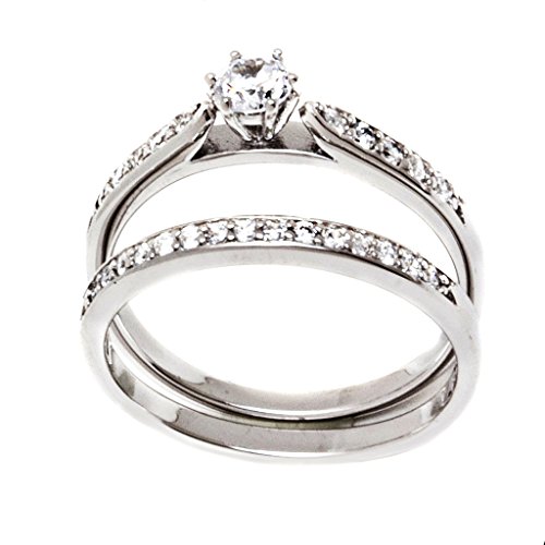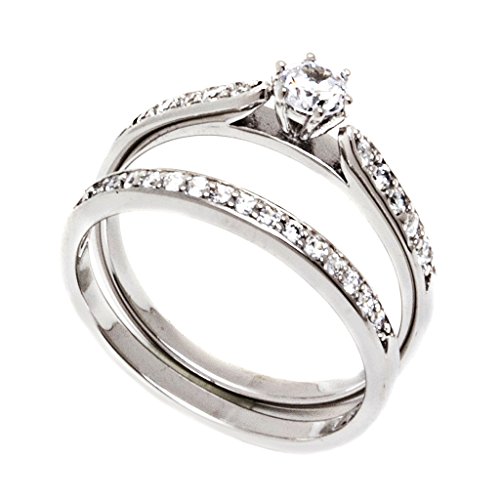 -. Feature : Matching set + FREE Small Gift Box / Womens SOLID Sterling Silver (Stamped .925 to indicate Authenticity) and Mens SOLID TITANIUM (Hallmarked TITANIUM to indicate Authenticity)) / 2 piece Sterling Silver with Rhodium Plated Finish / The ring is BRAND NEW and guaranteed to be in 100% perfect condition. / Womens Sizes AVAILABLE: 6 7 8 9 Mens Sizes AVAILABLE: 5 6 7 8 9 10 11 12 13